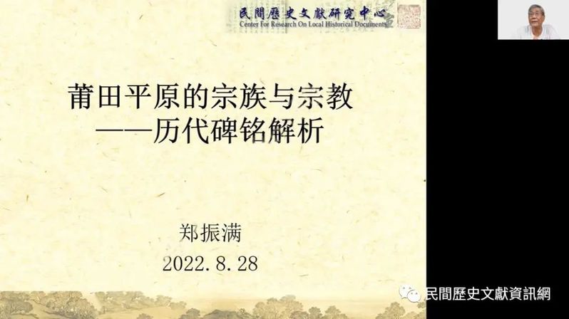 鄭振滿教授報告題目為「莆田平原的宗族與宗教——歷代碑銘解析」。他自上個世紀90年代始,便在莆田平原地區進行田野調查。報告首先強調碑刻文獻所具有的幾個特點。第一,碑刻文獻具有地方性;第二,碑刻具有公共性,碑刻內容基本為公共事務或共用的地方知識。其次,水利系統是莆田平原地方社會構成的主要因素,社會共同體的基礎是水利系統。再之,宗教儀式與莆田地方社會的關係非常密切。莆田平原的地方社會將地方信仰、地方組織與國家制度相結合,使其正統化、合法化。在此過程中,「社」成為當地重要的儀式和社會組成單位。