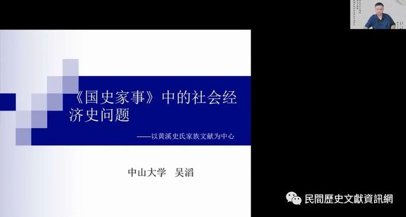 吳滔教授報告題目為「《國史家事》中的社會經濟史問題——以黃溪史氏家族文獻為中心」,該報告主要以明線和暗線兩部份構成。在明線中,他考辨《致身錄》流傳的版本、成書過程以及歷代翻刻的基本脈絡。在暗線中,則圍繞糧長制度和宗法禮制的變革,探討黃溪史氏如何適應國家制度,通過「大戶承役、小戶免役」和龕位元改革等方式,調整了宗族間賦役負擔和財產之間的連帶關係。