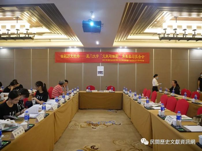 2021年6月7日由厦门大学历史系与漳州台商投资区联合举办,厦门大学民间历史文献研究中心承办的“海上丝绸之路与角美侨乡”研讨会暨回到历史现场——2021年度厦门大学“文献与田野”实习汇报会,在漳州角美举行,厦门大学历史系同学对角美镇12个村落的田野调查成果进行汇报。漳州台商投资区社会事务综合服务中心主任李文勇与厦门大学历史系主任张侃分别致辞。李文勇指出海上丝绸之路与角美古镇的研讨会也是厦门大学田野与文献角美实习的报告会,是校地合作以来取得的重要成果,也是校地合作的新起点。张侃叙述了与角美的情缘与学术机遇,对台商投资区支持厦大进行田野调查的感谢,表达对于实现更高学术追求与服务社会的期许。