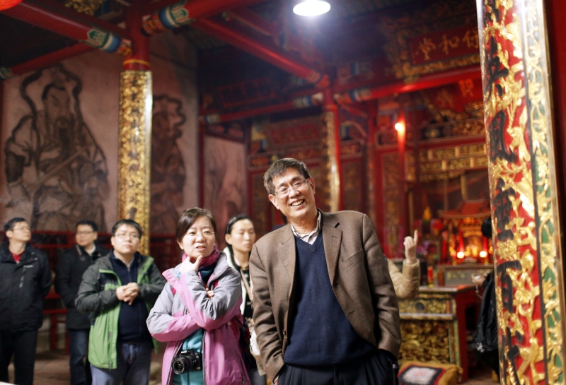幾日間參訪的廟宇為鄭老師所精心選擇。他期待大家透過廟宇所屬的不同等級、各類信仰、廟宇的建造時段與現實狀況,理解宗族在地區社會結構和組織關係中扮演的核心功能。在行程中,鄭老師一句一句帶領大家閱讀碑文,分析各類通告與規章條例,解讀捐款、收費記錄、廟所管轄地區的戶主聯絡名單與林產布告,講解神明的身分、來由,令大家獲益匪淺。(圖1)