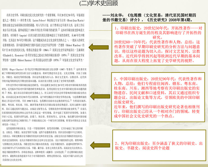 首先,金晶学姐分享了书评写作方法。她结合荣新江先生《学术训练与学术规范》一书,主要就书评标题拟定、文章框架安排、学术史回顾、内容简介、优缺点、学术展望等方面进行了举例介绍,让同学们了解优秀的书评是什么样的、是如何写出来的。她认为题目可以分主、副标题,把自己讨论的侧重点在主标题上体现出来。她强调,学术史回顾要全面,可以按时间顺序或具体内容进行总结。内容简介不一定每章都介绍,可以按照内容适当合并,字数不应过多。优缺点可以从理论、材料、笔法、论证逻辑、参考文献等方面加以讨论。金晶学姐还强调,要注意学术规范,多向同学、老师请教,反复修改,才能写出好的书评。