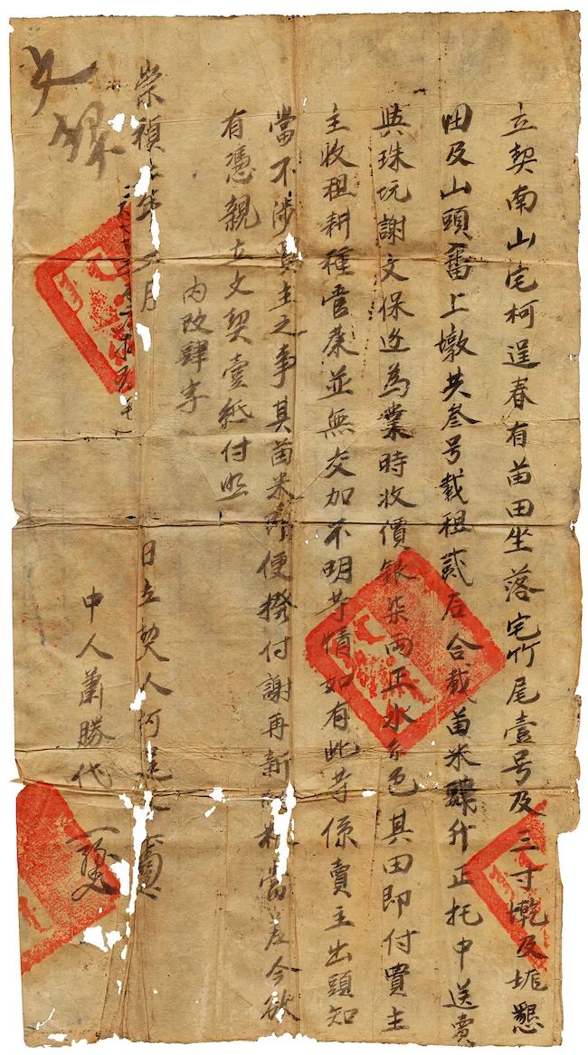 1939年夏天,中国社会经济史学派的主要奠基人傅衣凌先生随福建省政府内迁闽西山区,在永安黄历村的一座老宅中发现了一箱契约文书,开始致力于明清农村社会经济研究,撰写了学术名著《福建佃农经济史丛考》,开创了中国社会经济史研究的学术传统。近几十年,中国各地陆续发现了大量民间契约文书,如徽州文书、清水江文书、太行山文书、鄱阳湖文书、石仓文书、天门文书、客家文书等,极大地推进了中国历史与文化的“在地化”研究。
