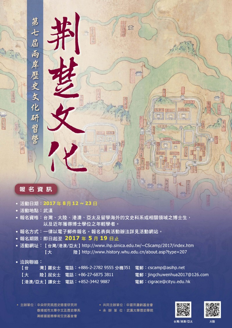 臺灣、港澳、亞太:2017年第七屆兩岸歷史文化研習營http://www.ihp.sinica.edu.tw/~CScamp/2017/index.htm