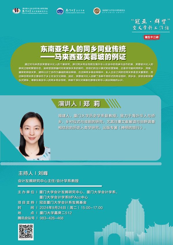 演讲题目:东南亚华人的同乡同业传统——马来西亚芙蓉坡的例证
