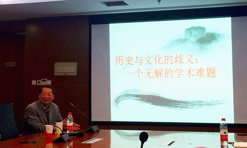 陈支平教授首先指出,对历史与文化歧义的思考源于他学术实践中遇到的问题。陈教授举例说明了历史学者往往在社会文化活动中陷入尴尬的境地,进而指出造成这种尴尬的原因是历史学者没有清楚认识到历史和文化的区别。陈教授认为,历史与文化最大的差别在于二者目的不同:历史学的功能在于求真,历史的真实、客观性是每个合格历史学者必须尊重的。而文化学的功能则在于弘扬文化,在人们心中建立起文化共识,而在建立文化共识的过程中,历史事实必然经过了文化的修饰,人们宣扬文化中的优秀传统,又回避了文化中的消极因素。历史与文化存在联系,文化的形成需要一定的历史事实作为依据,而文化一旦形成,其对大众的强大影响力又会笼罩历史,使历史服从于文化。因此,陈教授认为,文化共识绝不等同于历史事实。陈教授最后总结道,历史学者必须坚持原则和底线,即尊重、展示历史的客观真实,又不能因为文化在某种程度上不符合历史事实而否定文化,因为超越于史实的文化共识,体现的文化意义更具有永恒价值。如何在这样一个无解的难题中谨慎自处,是每个历史学家必须思考的问题。在讲座中,陈教授不断用他的生活经历形象地为同学们阐释问题,生动风趣,诙谐幽默,整场讲座掌声不断。
