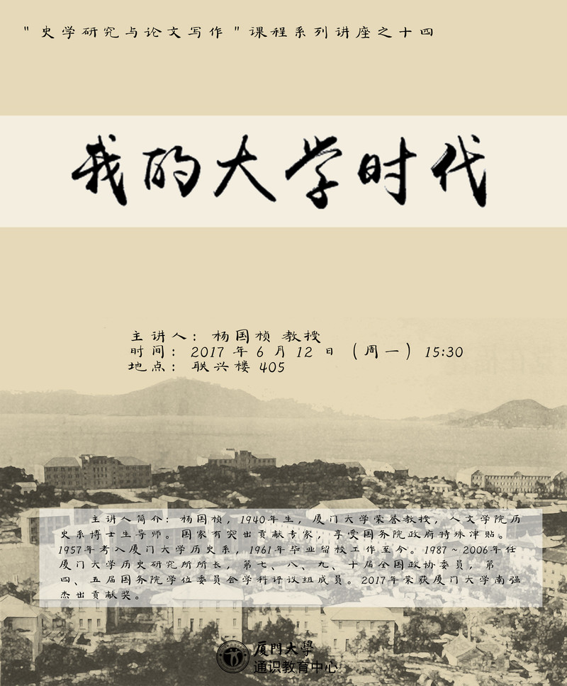 主讲人简介:杨国桢,厦门大学荣誉教授,人文学院历史系博士生导师。国家有突出贡献专家,享受国务院政府特殊津贴。1957年考入厦门大学历史系,1961年毕业留校工作至今。1987~2006年任厦门大学历史研究所所长,第七、八、九、十届全国政协委员,第四、五届国务院学位委员会学科评议组成员。2017年荣获厦门大学南强杰出贡献奖。