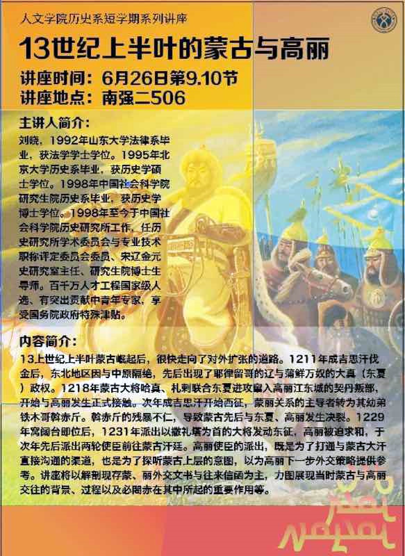 讲题:13世纪上半叶的蒙古与高丽