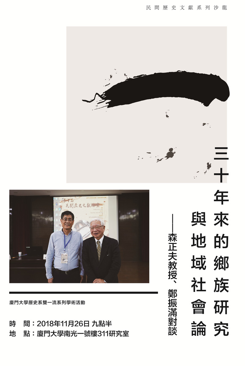 1983年9月我住在廈門大學,邀請傅衣凌和楊國楨两位先生前後舉辦6次的合作研究會。有一次就傅衣凌先生提倡的「鄉族」進行坦誠的意見交流。之後, 廈門大學刊出研究會紀要,我也發表相關短文。在此的前兩年1981年我在名古屋大學東洋史學研究室跟東海地區的同仁和年青研究生們共同召開的中國史研討會上,負責主題報告,即〈近代以前中國歴史研究中的地域社會觀點〉,已經過了差不多30年。之前承蒙台灣師範大學歴史學系邀請我擔任學術研討論會的主題演講,提供的兩個講題當中,有一個涉及「地域社會」論。這時,我想到廈門大學歴史系鄭振満先生參加1983年合作研究會之後持續研究「鄉族」,近年發表三篇相關的大作。因此我希望藉此機會再次就30年前個人很關心的「鄉族」和「地域社會」這两個課題進行報告。我將題目訂為《三十年來的鄉族研究與地域社會論》,第一章主要介紹鄭振満先生最近的成果和它的研究特點,同時運用附錄的資料。第二章首先敘述1981年我個人有關地域社會觀點的基本報告内容和現在的感想,接著提出對鄭振満先生相關研究成果的個人淺見。同時期待在場各位先生女士關於今天明清史研究所面臨的課題能不吝賜教。