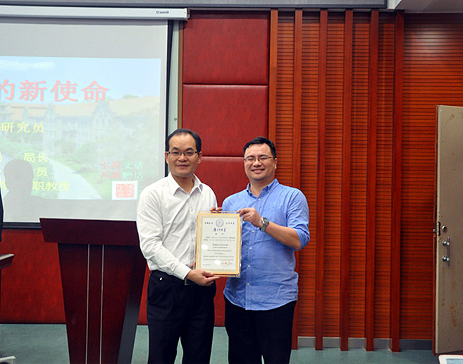 2018年12月21日晚上,厦门大学南光一101报告厅迎来了福建省文物局傅柒生局长为厦门大学师生做题为《文化遗产的新使命》精彩讲座,同时举行了聘请傅柒生为厦门大学文物与博物馆专业兼职教授的仪式,整个活动由历史系教授蔡保全主持。