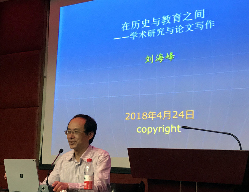 2018年4月24日下午,科举史学和高教领域国际知名学者、国务院学位委员会教育学学科评议组成员、厦门大学高等教育研究院院长刘海峰先生,受邀到人文学院101报告厅,为我们作了一场题为“在历史与教育之间——学术研究与论文写作”的学术报告。本次讲座系刁培俊老师开设的“史学研究与论文写作”课程名师典范系列讲座之一。厦门大学历史系张侃、毛蕾、刁培俊等老师出席了本次讲座。