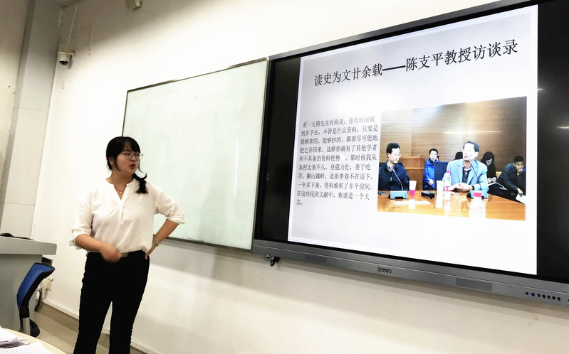讲座伊始,刘老师从自身的学习经历出发,与同学们分享自己利用和分析民间文献的经验。其报告的主体内容分为四部分:史料、问题意识、跨学科研究、微观研究与宏观研究相结合。