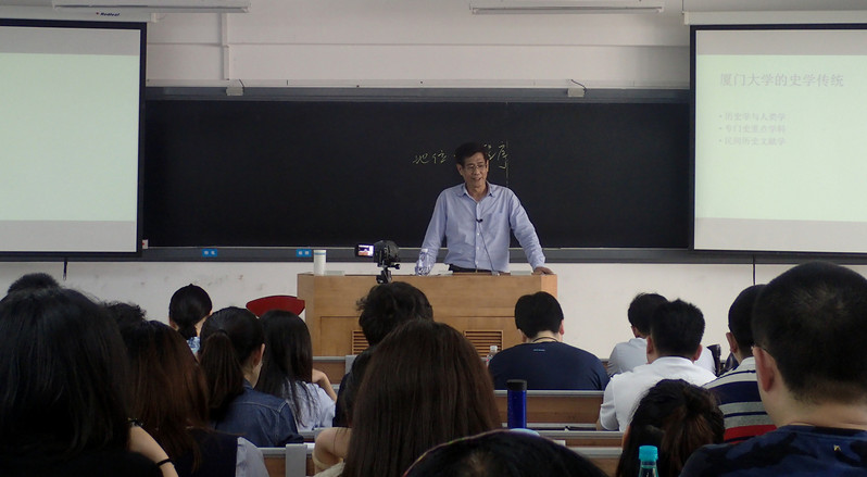 2017年4月10日下午,厦门大学历史系郑振满教授在联兴楼405举办了主题为“民间文献与田野调查”的学术讲座。此为“史学研究与论文写作”课程系列讲座的第六场。历史系、南洋研究院、台湾研究院等院系的百余位师生积极参与了这场讲座,此外,厦门大学经济学院焦建华教授、新闻传播学院邹振东教授、华侨大学陈景熙教授、金门大学李宗翰教授等学者也专程而来,现场座无虚席,气氛热烈。