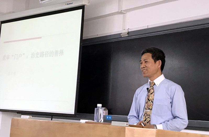 2017年4月17日下午,厦门大学历史系王日根教授在联兴楼405举办了主题为“重审‘门户’:治史路径的善择”的学术讲座。此为“史学研究与论文写作”课程系列讲座的第七场。历史系等院系的近百位师生积极参与了这场讲座。