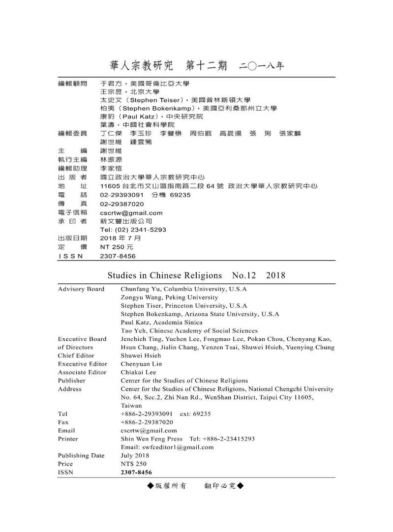 摘要:太歲神是華人信仰當中的重要神祗之一,在宋代便被諸道派人格化並起名為殷郊。除了道教典籍,殷郊也出現在多部文學作品中,且形象更是多變。在西方宗教學界,視覺文化近期再度受到關注,一些學者也提倡促進視覺文化研究與宗教研究之間的對話。反觀華人宗教學界,由於長期著重文本與儀式的研究,對於神明的形象問題則有所忽略,而殷郊信仰便是其中一例。實際上,涉及到殷郊信仰的論著並不乏,但是關於其形象與接受的問題則有待進一步研究。有鑒於此,本文旨在通過分析宗教文本和文學文本中的殷郊形象,以此探討神明形象變遷所反映出的宗教形態。本文主張,神明的形象塑造不僅是宗教與文學的互動結果的具體表現,也是宗教競爭的產物之一。學者若欲還原這類互動和競爭關系,則需分別對於神明的稱謂、面貌特徵及配備器具三大要素進行考古和考證。