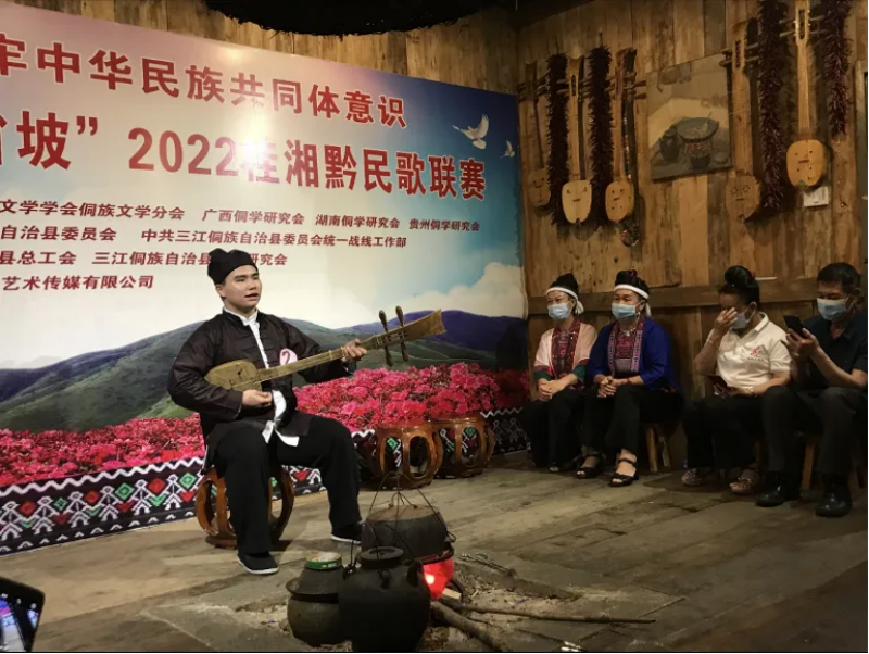 我去找村寨里的歌师、戏师了解他们的个人经历和师承关系,发现他们不但有歌舞才艺,更有比较高的“文化”水平(即汉字读写能力),他们不仅师承当地口传故事,更会将自己在书本上读到、外出听到和看到的各种知识和故事有选择性地编入当地的侗歌和侗戏之中。这一情况与不少戏曲资料和研究中提到的清代歌师和戏师读“汉书”、看“汉戏”后创作或改编地方戏曲相呼应,这也提醒我关注超越地方的文化与知识传统。清代著名歌师“亚华”曾是“不第秀才”的口传故事更引起了我的兴趣,亚华曾接受过传统科举教育,他改编、创作的大量民间歌谣影响深远、传唱至今,这也显示了汉字读写能力对口述创作的影响。2022年夏天,三江当地朋友邀请我去观看一场民歌演唱比赛,有两位十七八岁的侗族年轻人弹唱了当地著名的琵琶歌《劝世文》,他们手中拿着的《劝世文》歌词,就是“亚华”当年模仿清代著名的蒙学读物《增广贤文》改编的。歌唱比赛结束后,其中一位年轻人带我去拜访了教他弹唱琵琶歌的老歌师,我期待能从老歌师口中找到当年“亚华”创作歌本的线索。但老歌师坦言自己当年也是口传习得,因为自己从小念过私塾、识得汉字,才将口述的歌词用“汉字记音”的方式记录下来。我进一步发现,当前不同歌者手中流传的《劝世文》歌本并不完全一样,不同歌本包含着个人的记忆、理解与再创作,而且这与他们本人的汉字读写能力密不可分。这让我深深体会到口传过程中文字与口述“一与多”“统与分”的关系:文字能够将流传的知识或观念固定下来、拥有可以把握的稳定性,但口传活动却能够超越文字的统一性,将知识或观念进行跨越时空和语言的传播和传承,“文字—口传”的交互恰恰为这种跨越提供了更多的开放性和可能性。村寨中的歌师、戏师等就是一类能够在文字与口传、上层礼仪与下层文化中穿梭游走的中介者,仪式、戏曲、歌(戏)本则是在实践活动中形成的中介物,他们的师承与创造成为中介者将知识或观念立体化为歌、舞、乐等表演形式,通过表演者的身体实践及与之相关的物象层次表达出来的中介过程。