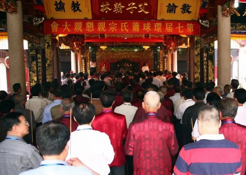一是分散性。传统祭祀,像朱子《家礼》以及各种古代宗族礼书中,都有非常繁琐的祭祀仪式,而在现代城市祠堂中,祭祀活动由宗亲联谊会主持。祭祀之日,理事会准备好各种祭品,一大早打开总祠的大神龛,祠堂周围,乃至各个乡镇的萧氏族人,聚集到祠堂,分散地上香祭拜。祠堂祭祀的分散性,即表现在没有进行统一的集中祭拜,也没有传统家礼严格的仪式。