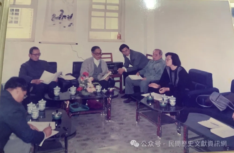 欧阳宗书、张晓宁博士论文答辩委员会预备会议,中排:韩国磐、杨国桢、右边陈支平,左边由上到下:陈春声、庄国土、王日根(秘书)。