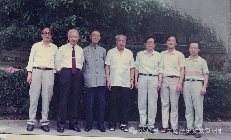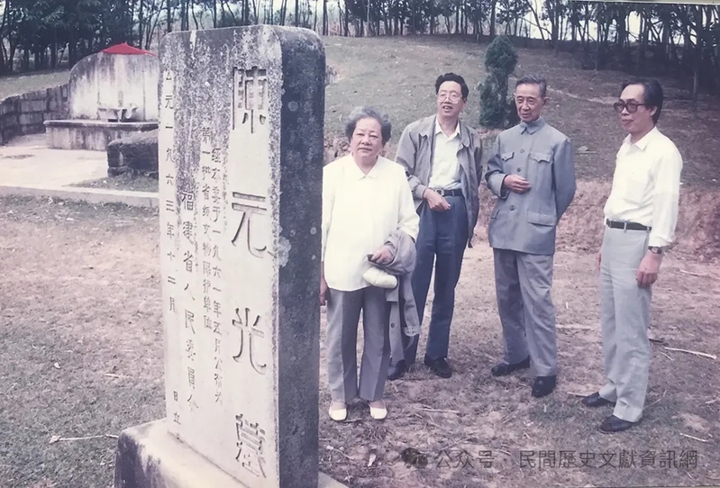 与韩国磐、刘慈萍夫妇(左三、四)拜谒陈元光墓。右起:苏炳堃、傅宗文、杨国桢。