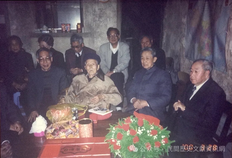 在叶老家中拜寿。前排左起:杨国桢、叶国庆、韩国磐、陈诗启。后排左起:王益强、张文绮、罗耀九、蒋炳钊、孔永松。