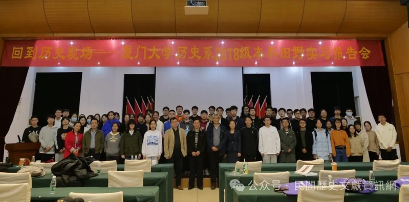 2022年1月10日由厦門大學歷史系與漳州台商投資區聯合舉辦,厦門大學民間歷史文獻研究中心承辦的「月港北港與海上絲綢之路」研討會暨回到歷史現場 厦門大學歷史系2018級本科生「文獻與田野」實習彙報會,在漳州角美舉行。漳州台商投資區社會事務綜合服務中心主任李文勇和社管局文旅柯洛敏、以及當地文史工作者列席報告會。來自厦門大學歷史系2018級的28名本科生、13名研究生以及鄭振滿、張侃、黃向春、饒偉新、鄭莉五位老師參會。報告會流程為分組報告和老師點評。同學們通過考察村落中的宗族與廟宇儀式,試圖瞭解此地區多元的發展模式以及社區運行機制。
