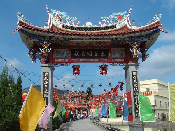 東遊明安殿俗稱“東遊洞”,據說是從古跡明安殿分出來的,始建於1849年,重建於1980年,2000年再次擴建。2008年,東遊明安殿買下了廟前的一大片土地,開發為“東遊公園”,目前還在繼續擴建之中。自1984年以來,東遊明安殿已持戒10次,現有壇班成員180多人。2008年底,東遊明安殿在舉行持戒儀式的同時,還舉辦了大規模的目連超度儀式,有不少海外鄉親回來參加,在海內外都有廣泛影響。