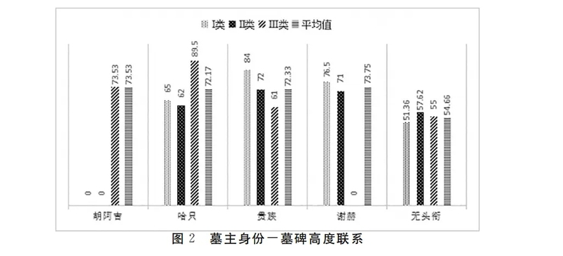 总的来说,三类墓碑在早期通常使用刮刻,整体质感较为粗糙;而在晚期不论在材质还是雕刻工艺上都更为精致,且不少墓碑表面磨光。然而,虽然研究者普遍认为元代伊斯兰教墓碑在形制上没有遵循统一的范式,且上述三类墓碑高度范围上大致重合,但身份显赫者,如胡阿吉、哈只、谢赫、贵族的墓碑,一般要比同类型的普通穆斯林墓碑高出许多,图2显示了不同身份的三类墓碑的高度差异。可以看出,地位显赫者之间的墓碑高度并无明显差异,但其墓碑高度平均高出无头衔者墓碑约15-20厘米,这一将墓主身份地位和墓碑高度联系的传统似乎来自塞尔柱时期的土耳其阿赫拉特地区,后逐渐运用在印度德里苏丹国和东南亚各地。