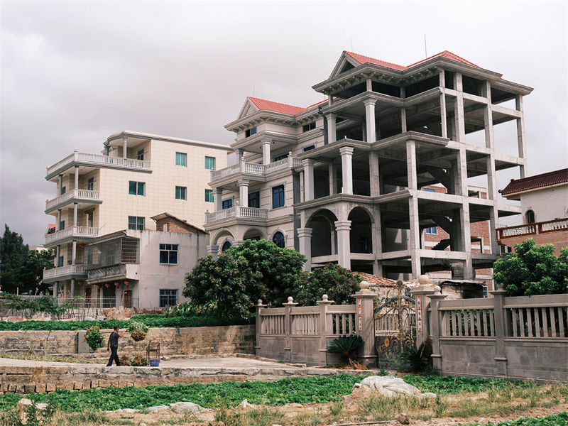 我们只能凭借遍布埭头半岛的那些形状各异的民居想象孙村春节的盛况。回乡盖房,是“界外人”发达后要做的第一件事。刘力家的房子是2005年就修好的,那是他在四川开出金店的第二年,四层小楼,一共1000多平方米。和他一起“打金”的朋友们也大抵如此,从市区开往孙村的县道两旁,动辄四五层的小洋楼密密匝匝挤在一起,大理石立面、古罗马立柱,佐以绿色反光玻璃和红瓦屋顶,同事张雷是摄影师,他说这儿可以开个“中国奇异建筑博览会”。