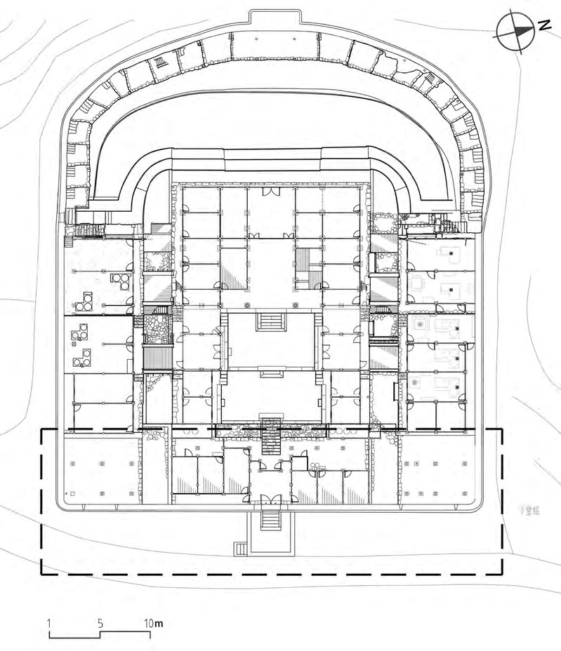 图12 光裕堡台地轴测图(图片来源:浙江大学建筑系《福建省三明市尤溪县书京村光裕堡、瑞庆堡测绘图集》,测绘于 2017 年)