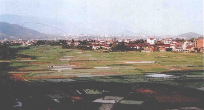 仙游沿海地区的耕地,原来大多是「海埔」,唐以后历经围海造田,兴修水利,逐渐形成了若干小块平原。如云:「自五侯陈氏筑海堤后,遂垦辟南庄洋,计开数千亩田地。王氏筑陡门至霞桥海岸,亦垦后洋千余亩。许氏筑后萧洋,更垦千余亩。他如南屿仔洋,皆系海埔」。元明之际,枫亭平原的开发已基本定型,农田水利系统也日趋完善。依据明人陈迁的〈石马陂记〉,早在元代以前,枫溪上游已有三峰总坝、岩头堰、东西圳等水利设施,分别引水灌溉沿海一带的东西二洋土地。元大德八年(1304年),全安庄僧人又于枫溪下游筑成石马陂,「实收堰之漏水,以助其不敷也」。这一水利系统一直沿用至今,其受益范围也与目前的枫亭平原大致相同。明末清初,由于农田水利系统受到破坏,枫亭平原的可耕地面积反而大幅度减少。清康熙六年(1667年),里人薛昆山在〈石码陂后记〉中述及:「此陂明季极盛。……迨余十二三之时,则陂、圳俱圮,沙壅将满,水不由故道,所见者水门石柱、陂址横石及南傍一片石岸安然如故。先君子每指以示予,尝为叹息,而南庄、全安庄之田,尽为海荡。……后龙华庄有僧名清者,自云全安庄嫡派,雇工砌筑陡门庄埭捍御海潮,便以成垦,想即迁公记所云东圳水灌东洋田是也。工未成而尽卖与威略将军吴浚洰,筑堤延绵不可以丈计,已成膏腴之产矣。独南庄之田俱系外衣人氏,前后未垦,以地卤水碱终莫能成,后尽归泉。」自此以后,枫亭平原虽然渐复旧观,但南庄一带的近万亩水田长期为泉州富室所占有,至近代仍未能收回。