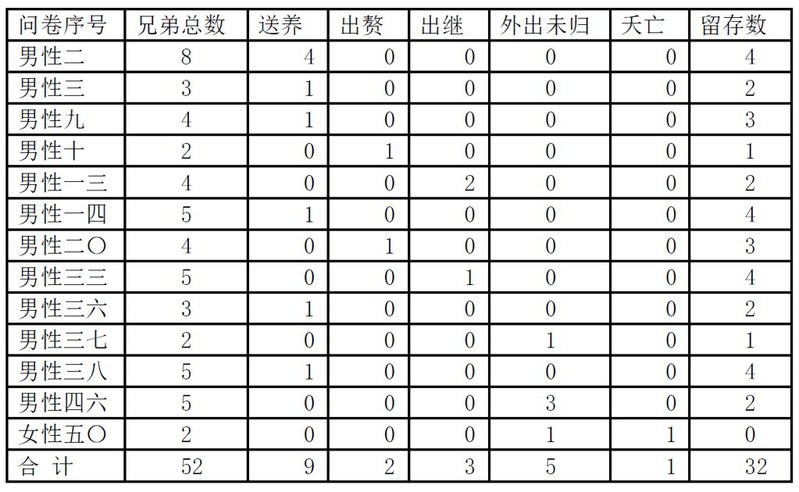 男性问卷五,兄弟三人,一弟出赘,一弟送人。