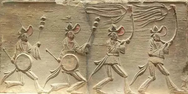 歌辞有相当一部分来自五胡政权统治下的北方,传入江南的过程可能比较复杂。鼓角横吹曲原本是军队之中演奏的乐曲,乐器之中有鼓角,“用之军中,马上所奏者是也”。这很自然地让人想到东晋中后期的几次北伐胜利,尤其是淝水之战和刘裕灭南燕、后秦之役,应当是比较重要的南传契机。东晋的北伐进军,不仅仅是军事行动,可以想见也会是南北文化交流的重要机会,歌谣也会在其中。