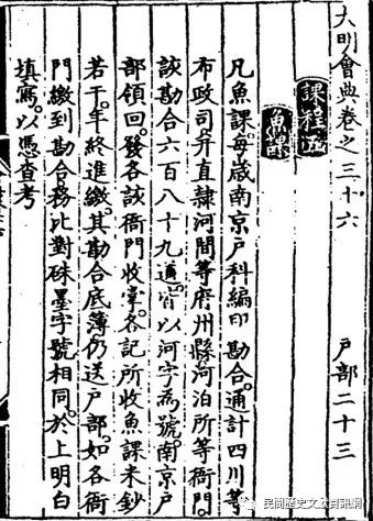 凡鱼课,每岁南京户科编印勘合,通计四川等布政司,并直隶河间等府州县河泊所等衙门,该勘合六百八十九道,皆以河字为号。南京户部领回,发各该衙门收掌,各记所收鱼课米钞若干,年终进缴。其勘合底簿,仍送户部。如各衙门缴到勘合,务比对朱墨字号相同,于上明白填写,以凭查考。