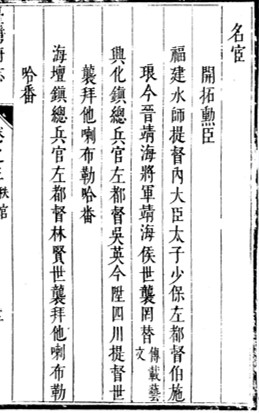 福建省晉江縣籍的吳英,原本也是鄭氏舊部,是施琅頗為信任的部將。施琅在給康熙皇帝的征伐報告中,有幾次特別凸顯吳英的軍功。清領後翌年即編修的首部《臺灣府志》,列有21 位「開拓勳臣」名單,吳英的排名僅次於施琅,高居第二位。關於吳英,有一篇很特別的文章,是鳳山縣廩生李欽文所寫的〈平臺記〉。該文特意凸顯吳英在清廷征臺戰役中的重要性。李欽文也精彩描述了吳英在軍政階段曾經三次鎮壓盜匪的情況,說明吳英作為軍事指揮官的機智和果斷。儘管李欽文的〈平臺記〉讀起來像是特地為吳英撰寫的功德碑,多少有美化吳英形象的成分。但〈平臺記〉完全沒有提到吳英主政期間曾經做過任何有關民政的重要改革,他處理盜匪時沒有向上級呈報、聽候審判就斷然予以處置,卻頗能反映戰後初期臺灣處於軍政統治階段的氛圍。