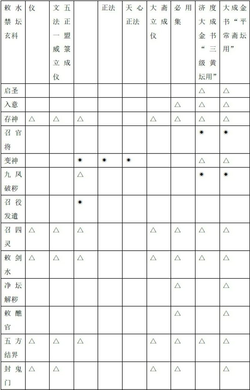注:表格中△代表该经典有此仪节,*代表该经典虽有此仪节,但并不列入禁坛的相关仪式程序。