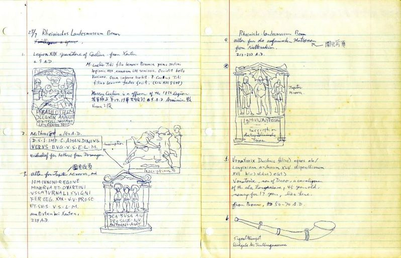 1978年7月25日在波昂莱因博物馆参观时所作罗马古碑及其他罗马文物笔记