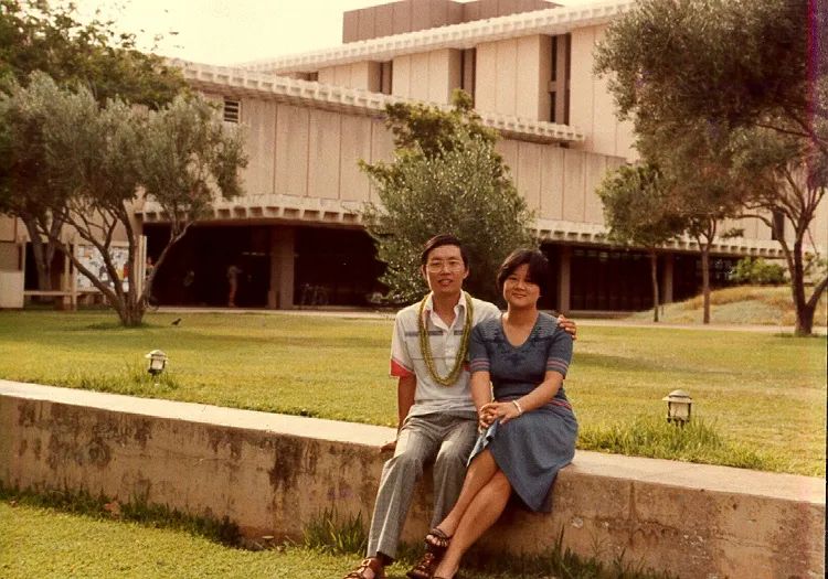1979年,邢义田夫妇摄于夏威夷大学汉密尔顿图书馆前