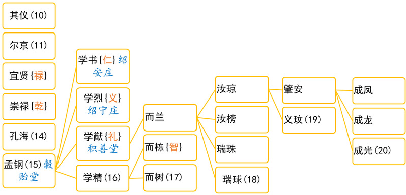 图7 锦安黄氏尔京派部分世系图