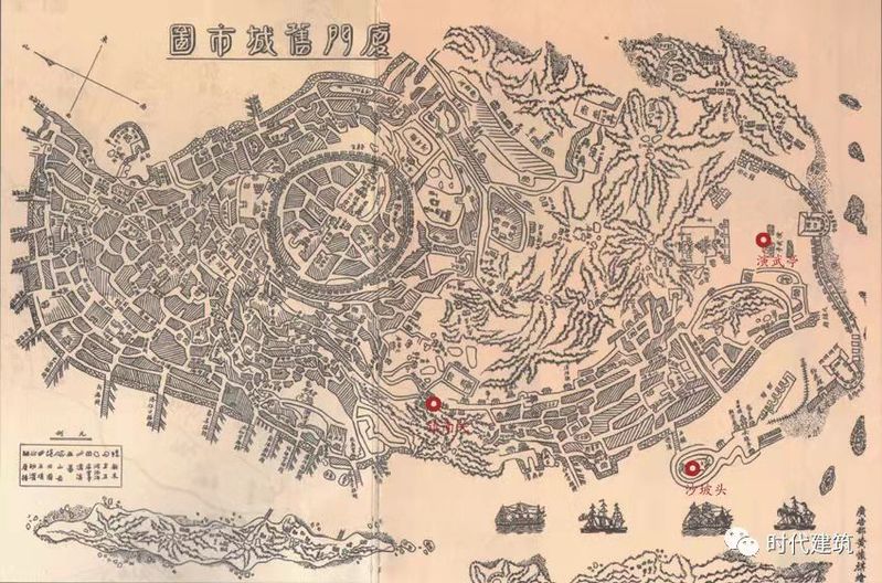 厦门岛位于九龙江的入海口,是明清以来东亚海上贸易与跨国人群流动的重要中心,具有鲜明的海洋文化特征。明清之际,明郑政权长期占据厦门岛,由此奠定了厦门作为中国东南沿海国际贸易中心的地位。在晚清民国时期大批闽南人出洋谋生,直至1949年,厦门一直是闽南地区海外移民重要的中转站。近代厦门城市的繁华与频繁的海上贸易、海外移民密不可分,不同文化族群的海洋流动性成为建构地方社会文化的关键因素,而长期活跃在厦港并承担海上运输和捕鱼的水上人便是其中典型的代表。“厦港在厦门岛南岸,东北通演武场,背依镇南关,南阻沙坡头,西南为港口。平潮水时水深仅数寸,满潮时水深约十尺。可容纳渔船一百二十艘碇泊。”(见图1)