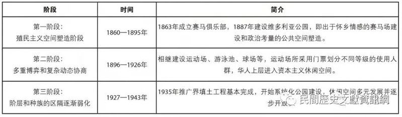 表2. 天津英租界休闲空间演变特点分期