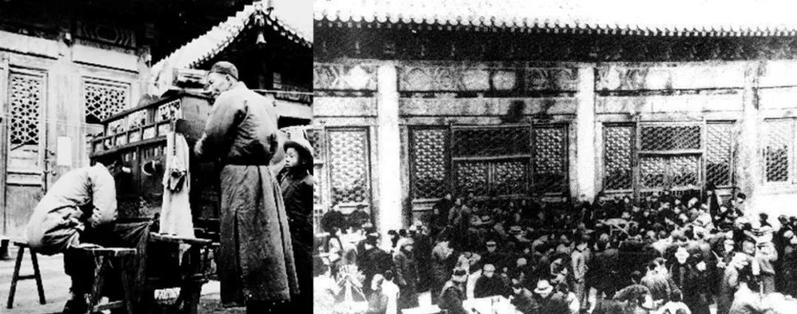 隆福寺为藏传佛教格鲁派寺院,是明朝和清朝朝廷的香火院,始建于明景泰三年(1452年),现已不存。隆福寺庙会是老北京最知名的庙会之一,兴起于明末清初,每旬九日、十日定期举办。七七事变后,庙会日渐衰落,至1950年底停业。图为隆福寺庙会的影像记录。[图源:Wikipedia]