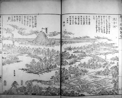 明成祖朱棣定都北京后重建京城,并重新挖掘护城河,“泡子河”由此形成。泡子河与诸多寺庙及科举取士的贡院比邻。图为清代嘉庆年间,冈田玉山等人编绘的《唐土名胜图会》中的泡子河。[图源:bjwmb.gov.cn]
