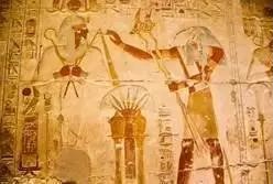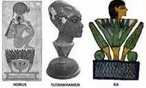 图19:荷鲁斯神、图坦哈蒙法老、拉神诞生于莲花中