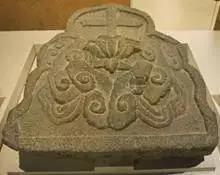 迄今为止中国境内发现不少景教“十字莲花”图案的遗物,其中北方地区以《大秦景教流行中国碑》(图1,藏西安碑林博物馆)和《赤峰“十字莲花”瓷砖》(图2,藏内蒙古博物馆)最为有名;东南沿海以泉州地区发现的景教十字莲花图案碑最多,其图案形式多为十字架矗立在莲花座上,或有祥云衬托。图3为其中之一,藏泉州海外交通史博物馆。
