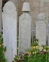 无论如何,《旧约》中的“苏珊花”应当是莲花,象征了人出生-死亡-重生(灵魂获拯救),因此与陵墓密切关联;作为一种象征“造物主”的圣花,莲花(苏珊花)又与神庙密切关联。埃及神庙柱子上遍布莲花,所罗门建造的圣殿上的“花”也应该是莲花,基督教教堂、伊斯兰教建筑和清真寺也都遍布“莲花”。笔者的这一观点可以在一系列的墓碑和宗教建筑上的莲花图案中得到证实。上文已经例举了穆斯林、犹太教徒和亚美尼亚基督教教徒的若干墓碑,我们再看看几块比较具有代表意义的墓碑。