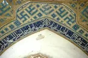西亚地区伊斯兰化之后,卐字符依然被伊斯兰教所吸收,广泛运用在伊斯兰建筑装饰图案中。图31是伊朗清真寺的装饰图案,在阿拉伯语“阿里(علی)”名字四方艺术体字符的旁边即是卐字符。