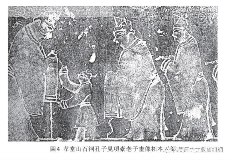 不過以畫像構圖而言,童子如果是追隨孔子見老子的豎子,則有不易理解的地方。按理隨侍的豎子似乎應跟從在孔子之後,不應居孔子之前昂首舉手,狀若與孔子相對而談論。又如果是隨侍孔子的豎子,為何持一輪狀物在手?也不好解釋。或許因為如此,不少學者和畫像著錄以為童子並非豎子,而是項橐。不過他們似乎理所當然地認為畫中的童子即項橐,沒有舉出如何將畫像與文獻連繫起來的明確證據。為此,我曾利用新出土的畫像榜題確證他就是傳世文獻中所說的項橐或項託。當時限於篇幅,主要根據畫像本身的證據,沒能多談傳世文獻中的相關資料。這裡作些文獻補證。