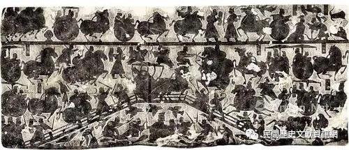 第二,「童子推蒲車而戲」的記載,是證實畫像中童子身份為項橐最有力的文獻證據。畫像裡的輪狀物,常作一輪或二輪,應該就是蒲車。「而戲」二字證明圖中之車應是一種童子玩具,很可能就是臨淄王阿命畫像中,小兒手拉的兩輪車(圖9)。據說蒲車原是以蒲裹輪,用於封禪之禮(《史記•封禪書》)。於兩漢則常用於禮迎賢士或隱者,又叫安車蒲輪或蒲輪(《漢書》〈武帝紀〉、〈枚乘傳〉等)。傳說中的項橐不過七歲,不可能推一部真正禮迎賢士或隱者的蒲車。畫像中只是以較小的身形和手持象徵性的小車玩具來表現小童,這小童應是項橐。如前所說,現今已有石刻畫像和壁畫榜題可以確證。文獻中所說的蒲車,無疑應和畫像並有出土實物可證的鳩車為同一類玩具。漢世賜七十以上老者鳩杖,鳩在漢代似應有慈幼敬老等多重的象徵意義。