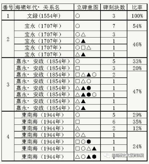 以上对文禄、宝永、嘉永(安政)、東南海四次地震海啸的碑刻进行了整理与分析。