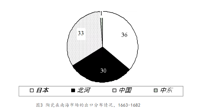 在经济方面,越南北河陶瓷的年出口量随海岛东南亚市场的需求量而上下波动。图1显示了越南北河陶瓷在1663-1681年间对巴达维亚出口总额的波动,图2则显示了越南北河、中国和日本各陶瓷产品在东南亚市场相对激烈的竞争态势。