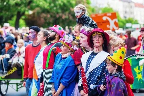 2002年就有五十万的观众聚集到柏林参与这个多文化的庆典。游行是庆典的高潮部分,来自80个族群的4200人参与进来,他们聚集到市中心,街道变成了舞台,促进了文化多样性的展示并且也提供了一个自我展示的空间。每一年最佳的造型、服饰和彩车都会得到嘉奖。2002年,被称之为“Khung Fu Acade-my”的获得了一等奖,因为彩车表达的是“经济削减”的含义。主角们假设,人们的精神力量和人口素质在进化,而不是在当即城市里人们所谈的社会福利,它表达了经济削减和资金短缺的意思。彩车给我们发出的信息是,与城市有关的政治问题被整合进了盛会之中,它们在公共空间里转换和展示。